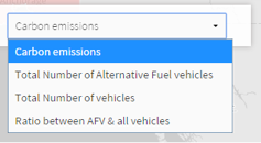 For the choropleth and overview tab views, we chose cool colors, mostly blues, to represent AFVs and warm colors, mostly reds, to represent carbon emissions. We wanted to associate feelings of nature and the environment with AFVs and to evoke the feeling of danger or warning when looking at carbon emissions.
